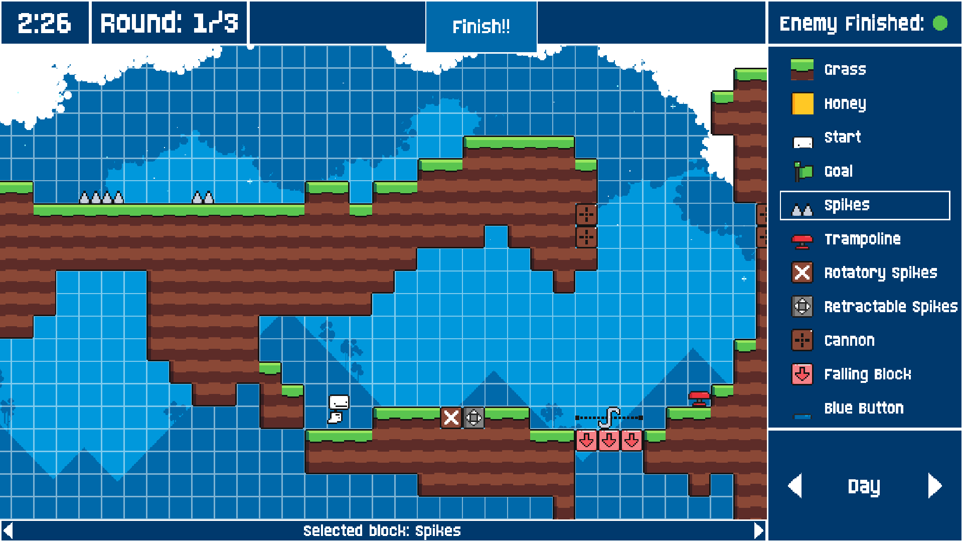 LevelFighters is a game that brings together two competitors to create a platform level and then challenge the other to complete it in less time than it took the creator of the level.
